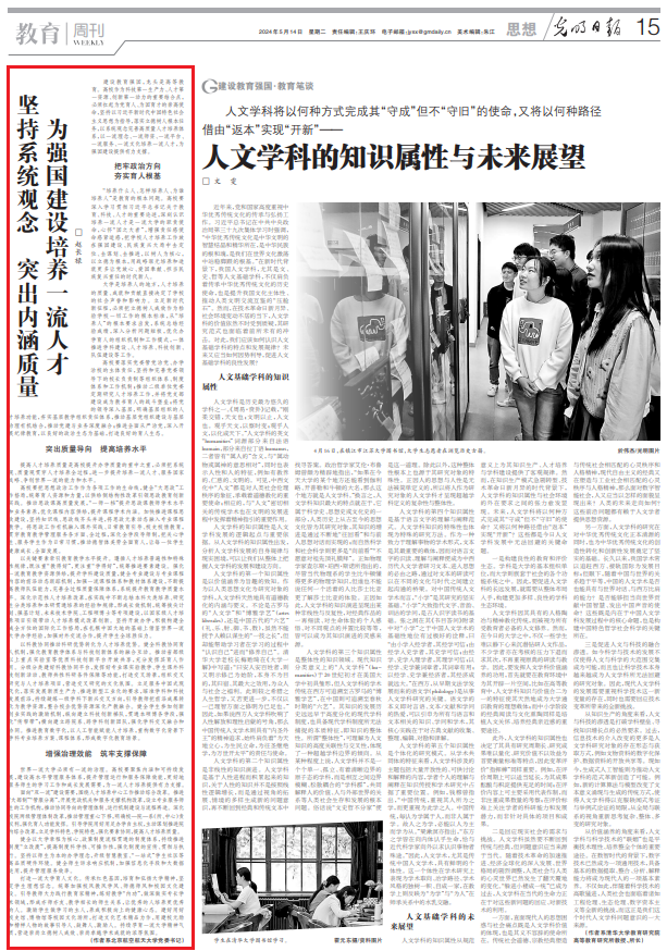 《光明日报》2024年5月14日刊发党委书记赵长禄署名文章: