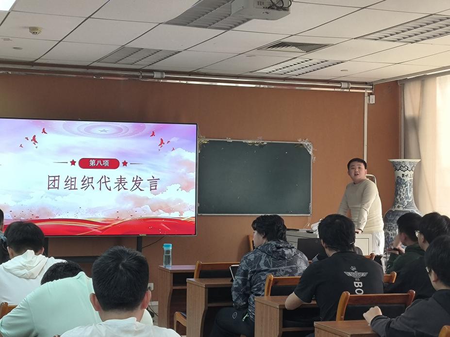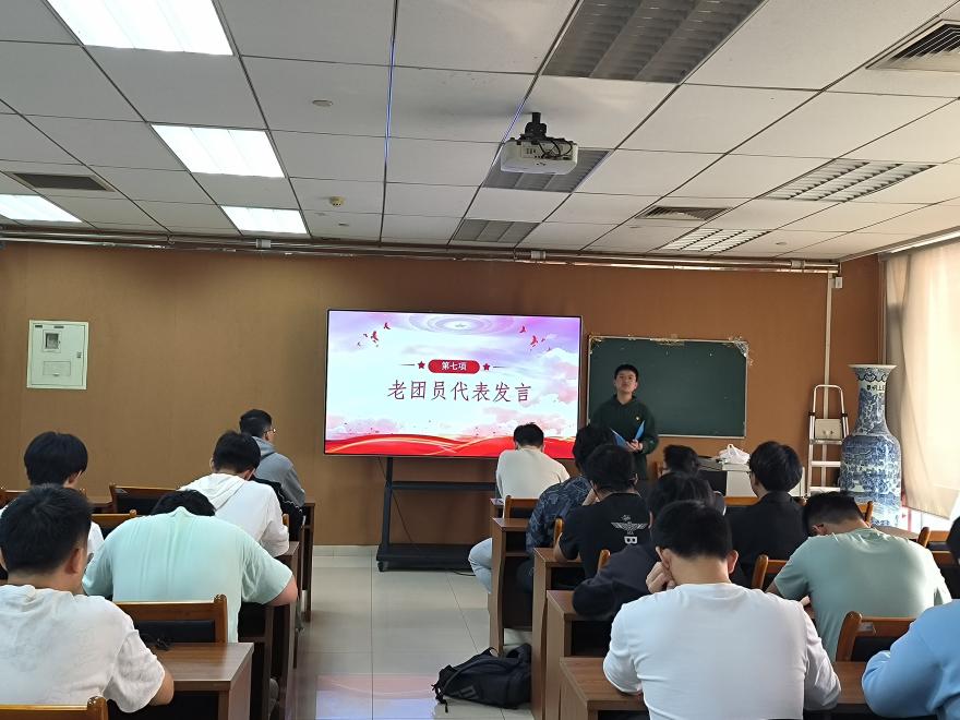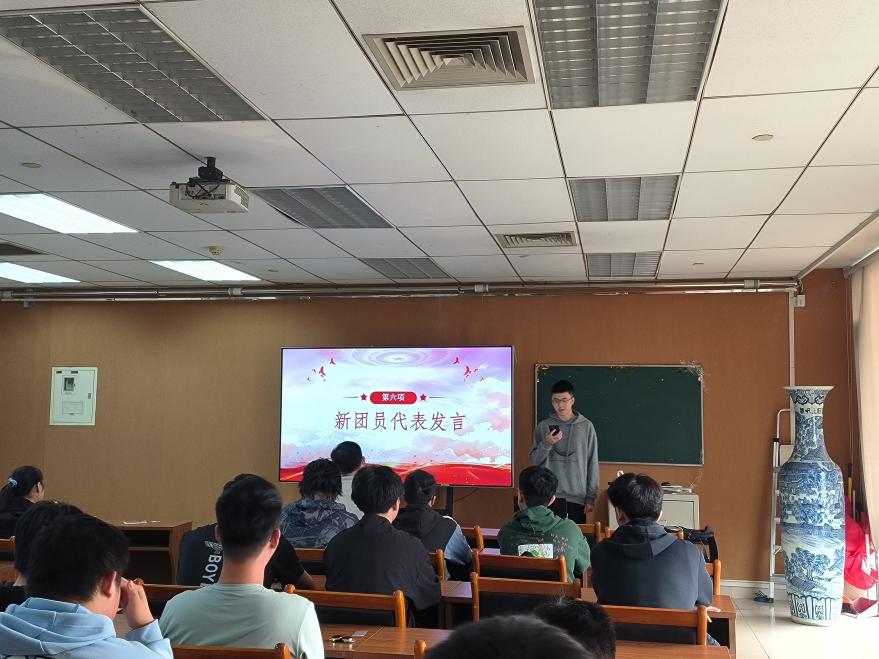 新团员代表沈琦玮同学分享自己成长的故事,讲述了自己成为团员的原因和今后的努力方向。会议第六项,老团员代表陈睿同学将自己多年来身为一名共青团员的所思所感融入发言中,勉励新团员们要立足本职、坚守信仰、牢记使命、勇于担当,积极投身于各项组织建设活动,以青春之我,创建青春之北航、青春之国家、青春之民族。
