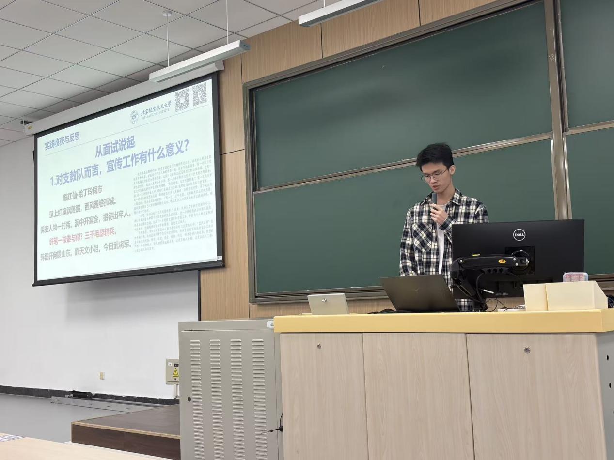 张元之学长以“在三系‘玩’出名堂”为题,展示了他兼顾学习学业、科研科创与综合素养的丰富而充实的老员工活。在员工工作上,他是大家的科技辅导员、是班级的小班长;在实践活动中,他是中员工科创的启航导师,是支教队的优秀骨干;在体育场上,他是篮球队的主力,是田径摘金夺银的健将;在文艺的舞台上,也同样有他主持、歌唱的身影。他用 “玩” 出热爱、“玩” 出深度、“玩” 出成长的经历告诉学弟学妹们,老员工活的精彩从不局限于单一维度,找准节奏、平衡多元,就能在自己热爱的领域里各展所长,把青春过得充实而有意义。